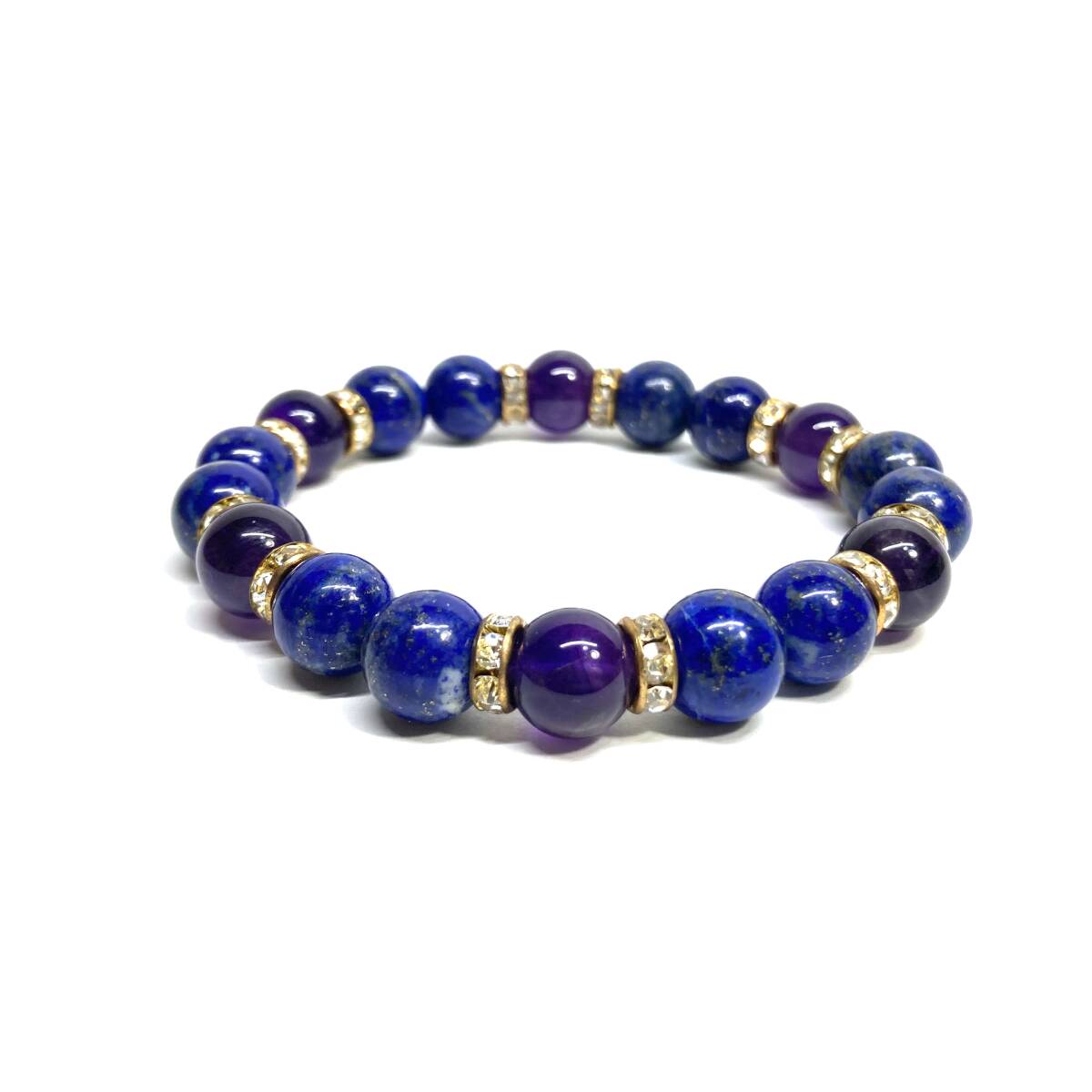 - ラピスラズリ&アメジスト パワーストーン ブレスレット 天然石ブレス (ゴールド) 10mm メンズ・レディース 恋愛運 ☆