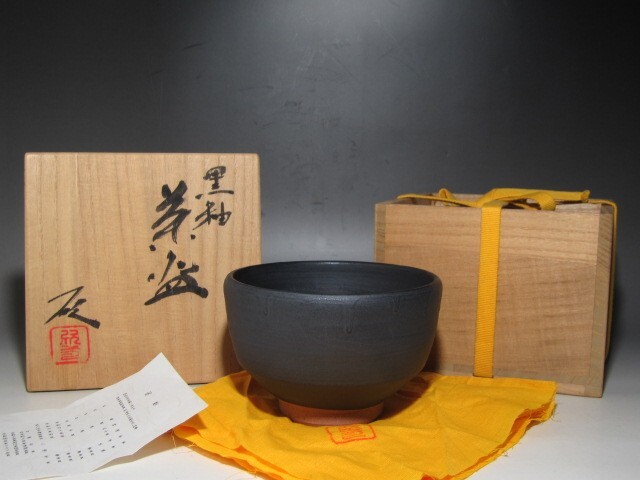 - 小川欣ニ 黒釉茶碗 久田流十二代尋牛斎花押☆z166