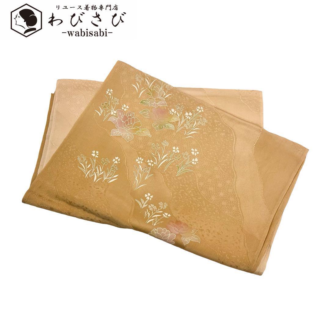 > 和装小物 帯揚げ 正絹 綸子 花模様 伽羅色 C-5573 着物 きもの kimono 和服 和装 中古 リサイクル着物 【送料無料】