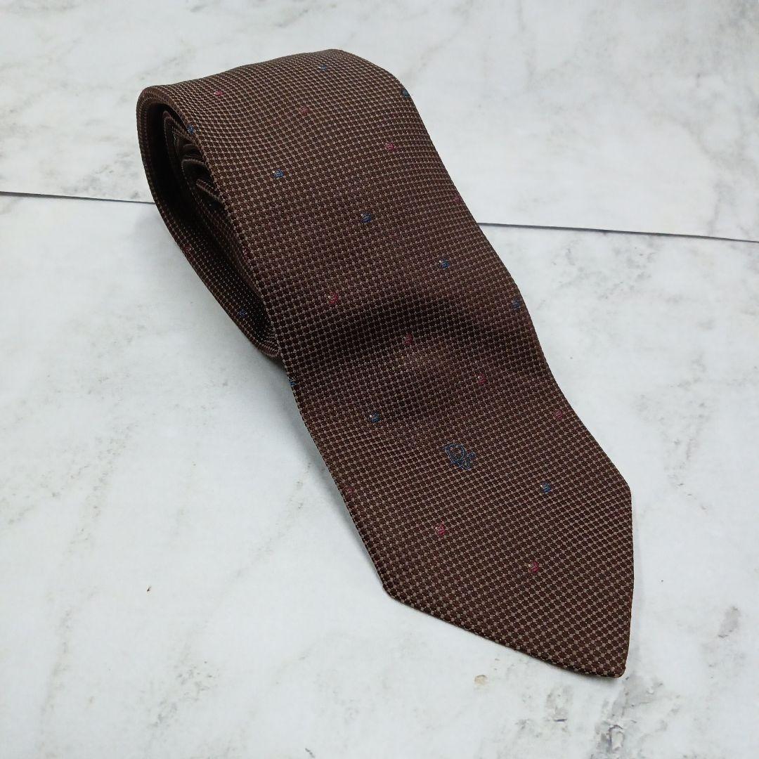 - クリスチャンディオール ネクタイ 茶色 ドット柄 レトロ【n295】