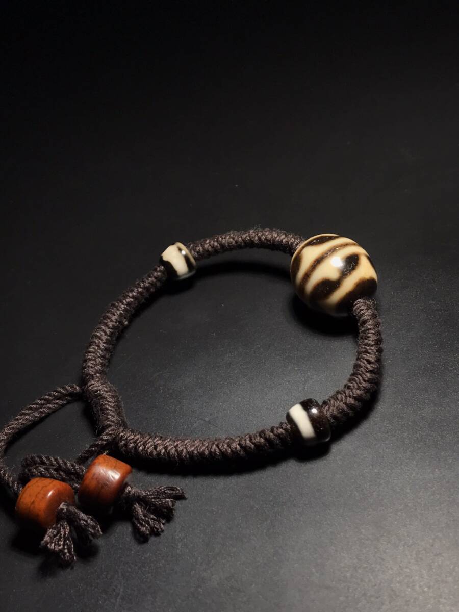 - 清時代 古達洛爽虎牙天珠彫 手串 腕輪 高油包漿 風化紋 箱付 極細工 古賞物 古美味 東洋彫刻 時代物 骨董 中国古美術