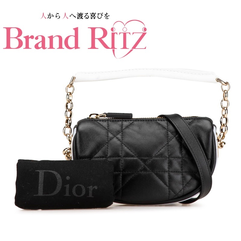- 中古 美品 ディオール ハンドバッグ ショルダーバッグ Aランク ヴァイブ カナージュ ブラック ホワイト 【送料無料】【西神店】