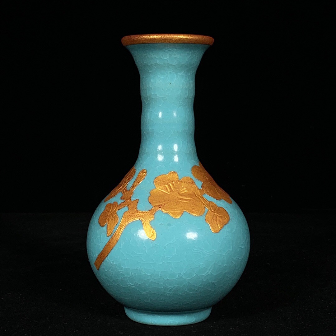 - 【蔵友館蔵品・宋・古陶瓷品・汝窯・包口・花卉紋・炫紋瓶】・希少珍品・置物・賞物・中国時代美術