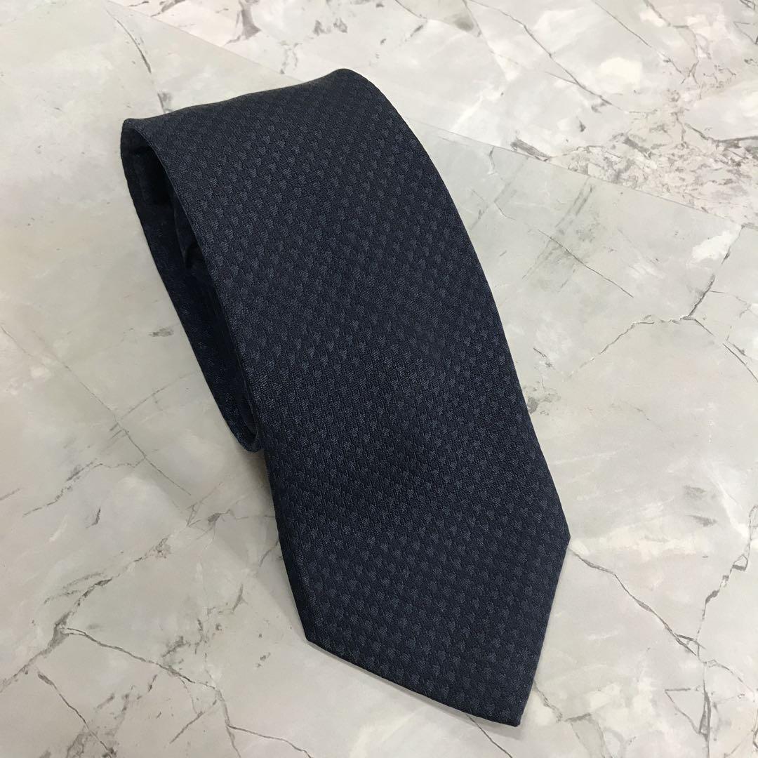 - ビームスハート ネクタイ 紺 光沢 小紋柄 シルク100% シック 【n365】