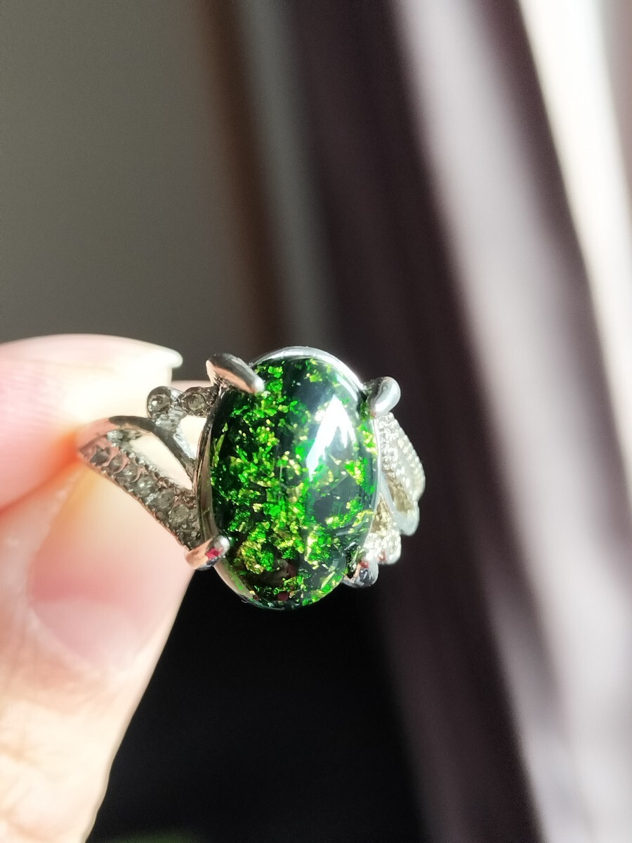 - オパール グリーン キラキラ 指輪 リング フリーサイズ
