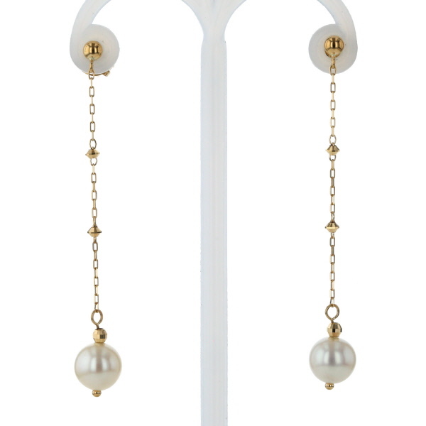 > K18YG イエローゴールド ピアス 真珠 6.0mm パール ロング ステーション チェーン スイング デザイン【新品仕上済】【zz】【中古】