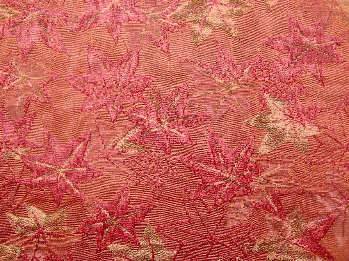 - 古布 半衿【正絹膨れ・刺繍織/楓・もみじ尽くし 渋赤橙濃淡/紅葉枯葉落葉秋もよう】はぎれ お細工吊し飾り市松人形木目込み人形一閑張
