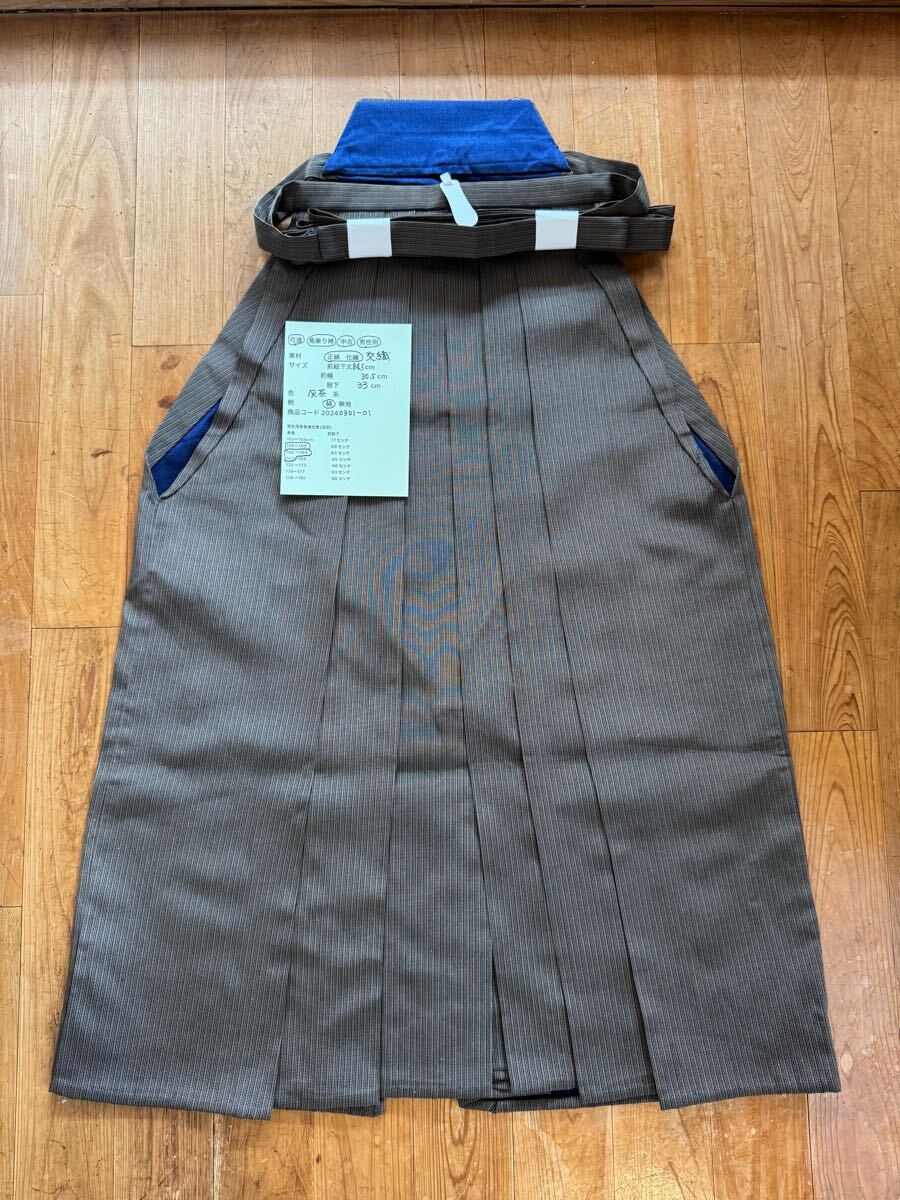 - 弓道 着物 馬乗り袴 矢渡し 射礼 絹化繊交織 男性用 縞 前紐下 84.5cm 20250301-01