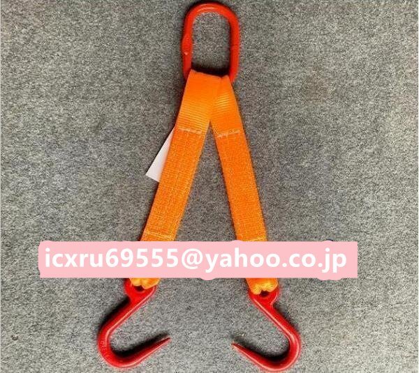 - 玉掛け用金具付きベルトスリング2点吊りスリングベルト炭素鋼製フック付き リング付きポリエステル製ベルト長さ0.5m耐荷重2t