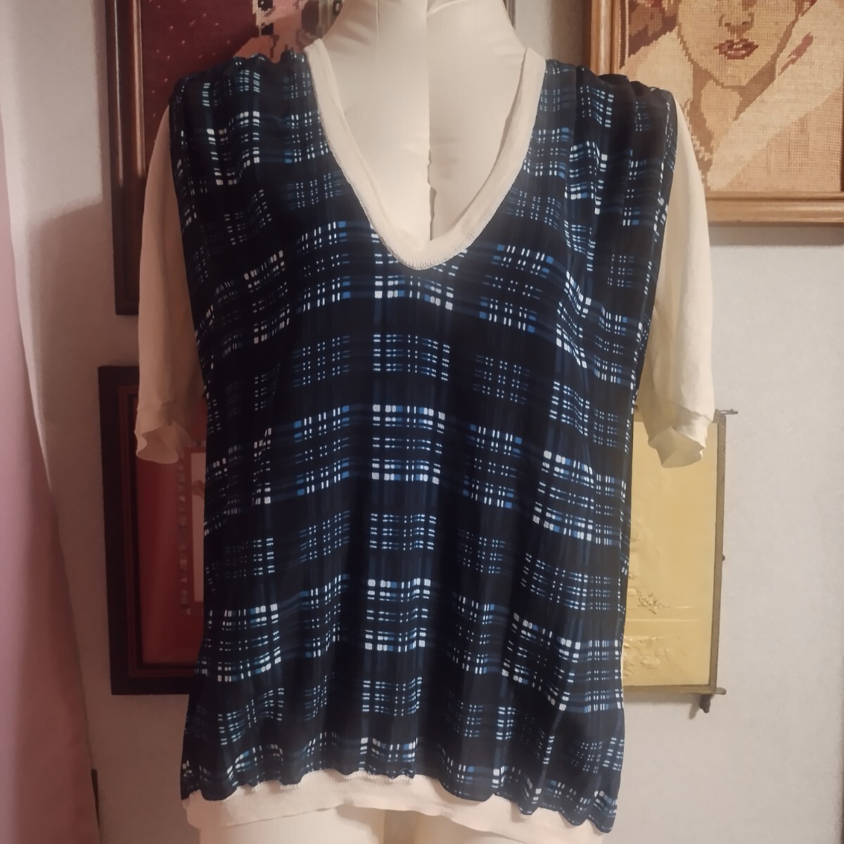 > 美品★3.1 phillip lim★半袖ニット★チェック★Vネック★ブルー★スリーワンフィリップリム★チュニック★オーバーサイズ★春夏★シアー