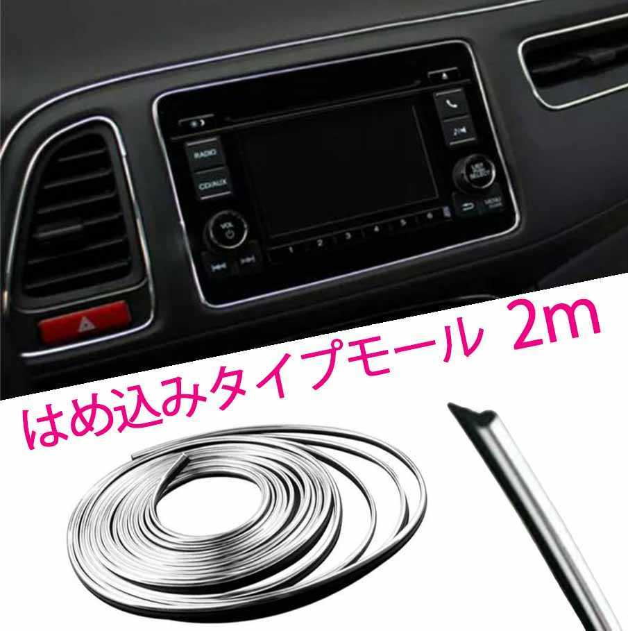- 《送料140円~》2m シルバー■差込式・はめ込み・スリムインテリアモール・メッキ化・ドレスアップ用・内装用