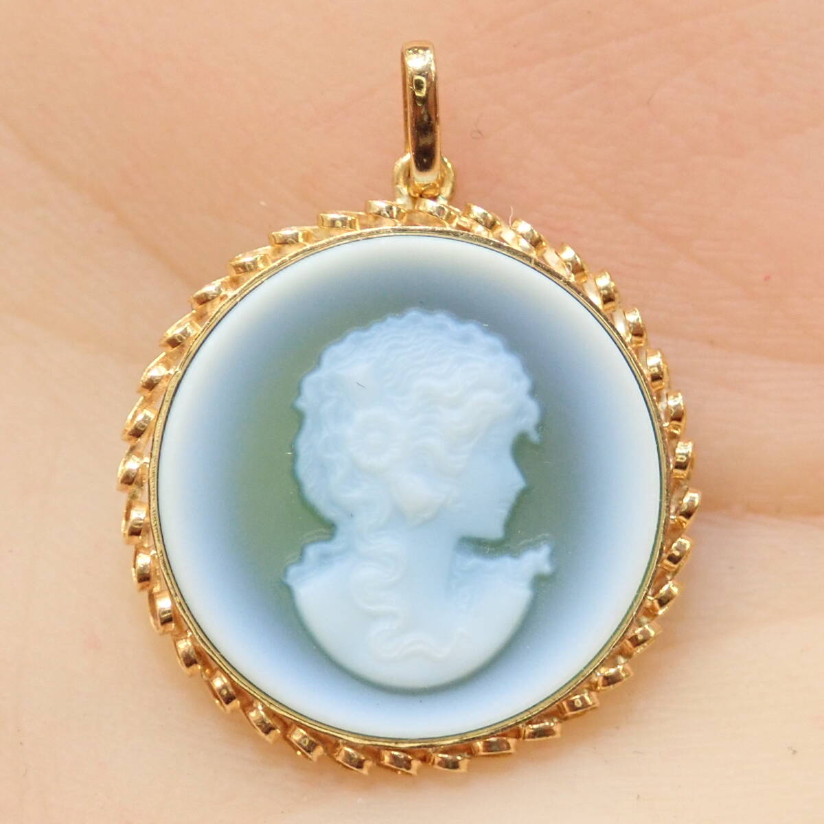 - ■K18ストーンカメオペンダントトップ■18金 めのう 瑪瑙カメオ■中古磨き仕上げ■