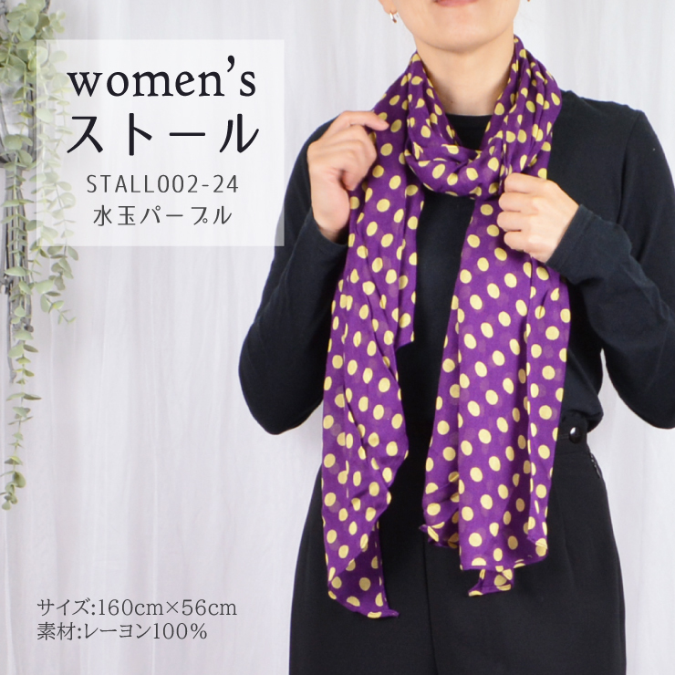 > 送料無料!! ストール 水玉 パープル×ベージュ◇STALL002-24◇新品 レディース 薄手 薄地 春 秋 ショール コーデ かわいい プレゼント Z1