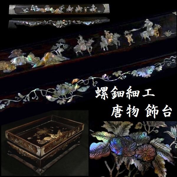 【 恵 #1556 】 中国美術 唐物 鮮やかな螺鈿細工 唐木 花蝶風景人物文 花台 置台 盆栽台拍卖
