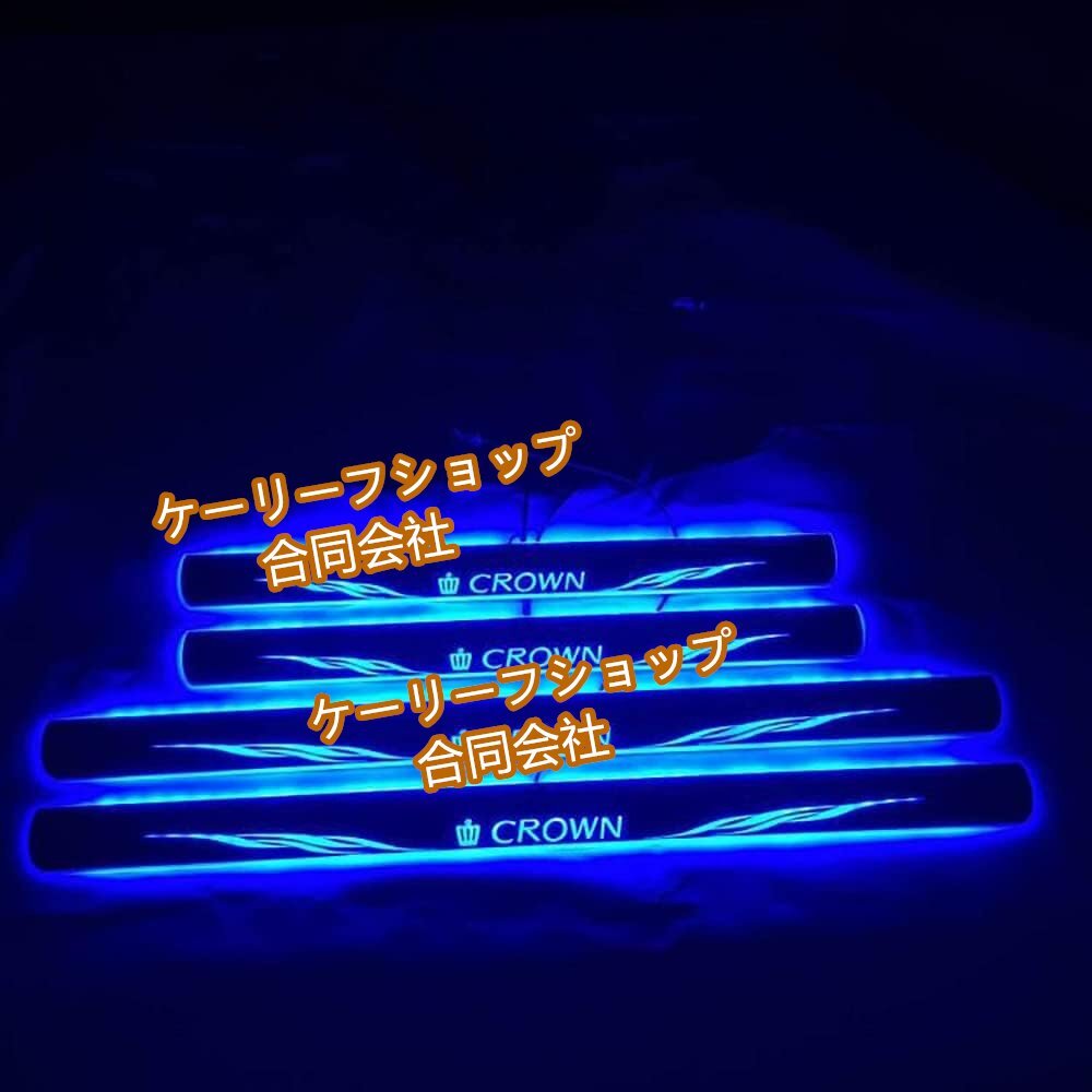 > クラウン スカッフプレート ステップガーニッシュ 210系 220系 180系 200系 LED流れる アクリル製 ドアステッププレート (ブルー点灯)