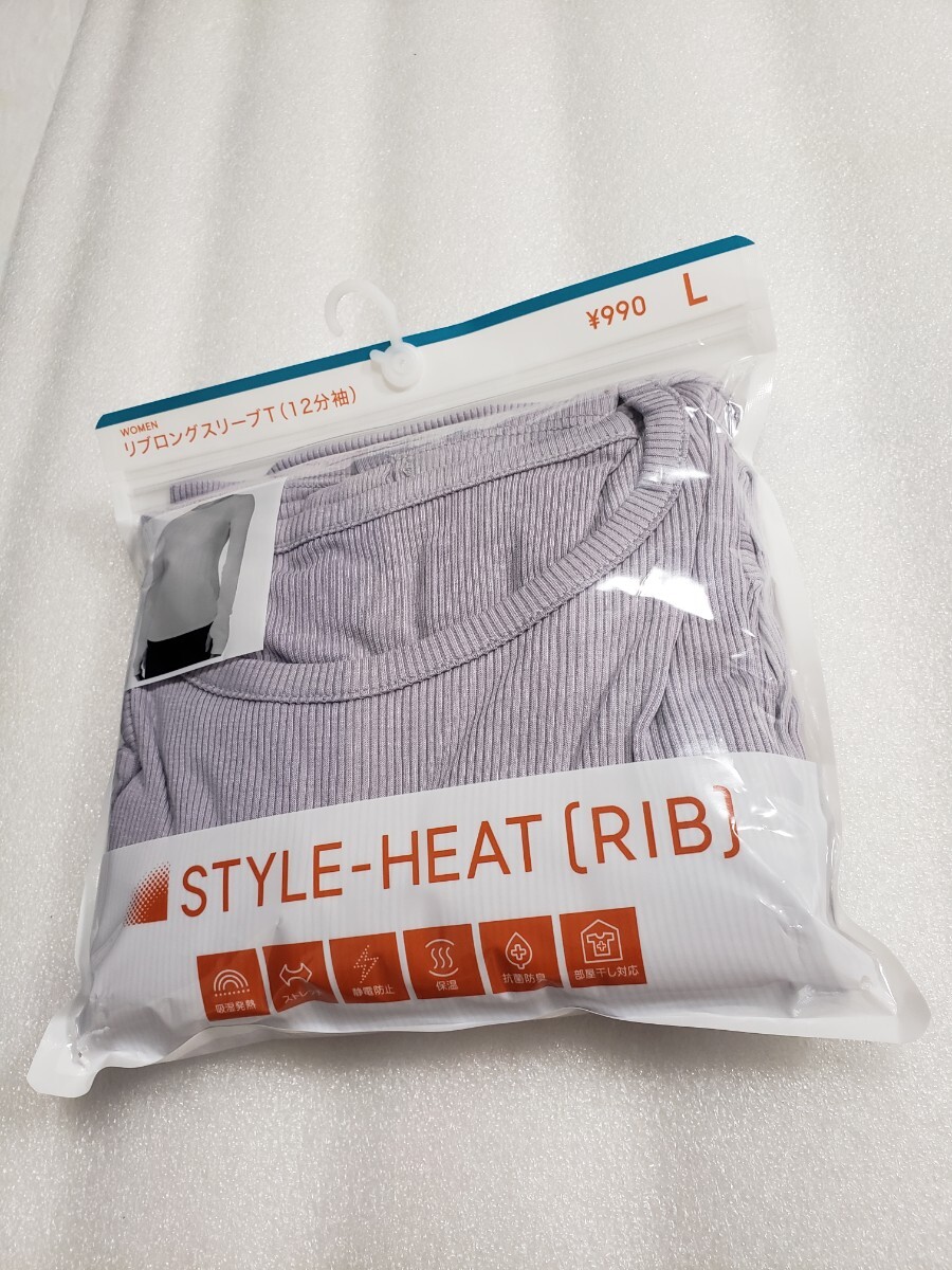 - Lサイズ 新品 スタイルヒート リブロングスリーブT 12分袖 グレー(薄ラベンダー系) GU 吸湿発熱 保温 静電防止 ストレッチ 抗菌防臭 部屋干