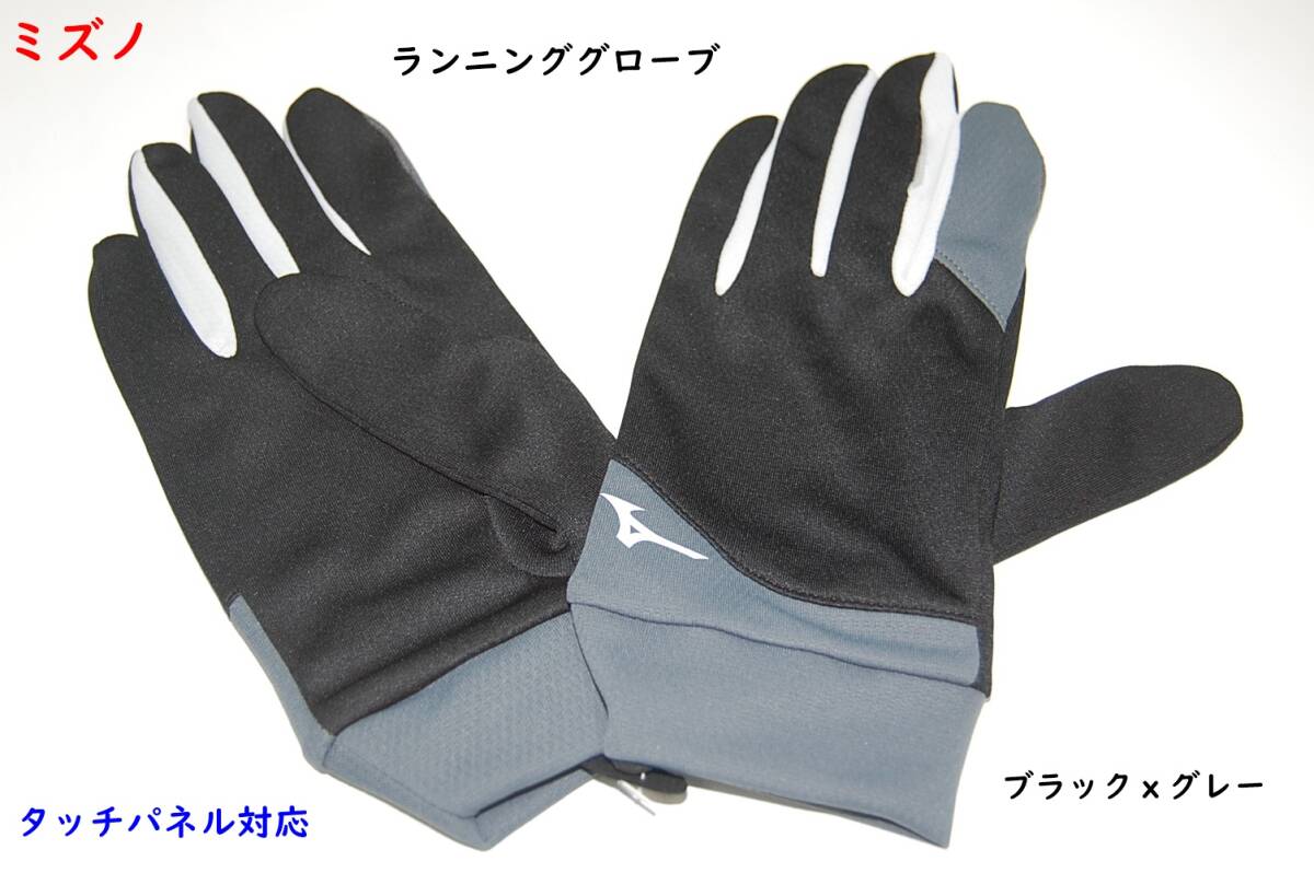 - ランニンググローブ/Mサイズ/ブラックxグレー/黒/ミズノ/タッチパネル対応/ランニング手袋/2200円即決
