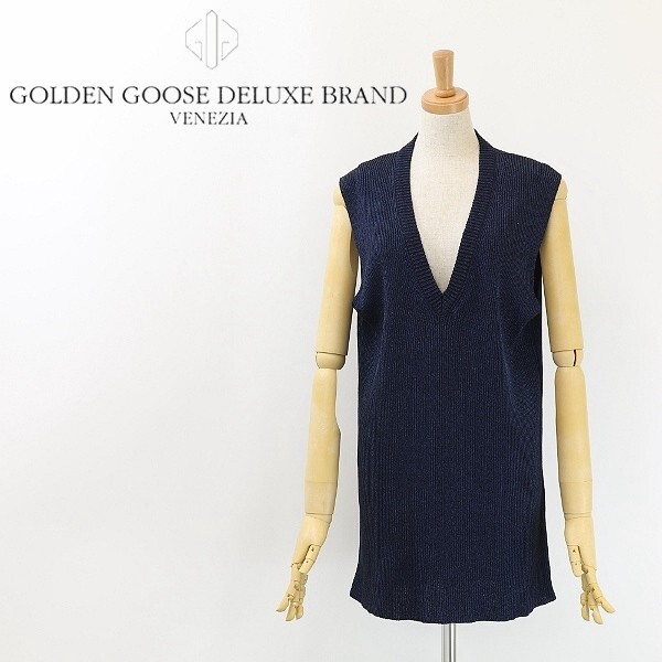 > 美品◆GOLDEN GOOSE DELUXE BRAND ゴールデン グース デラックス ブランド ラメ混 Vネック ニット チュニック ベスト 紺 ネイビー S