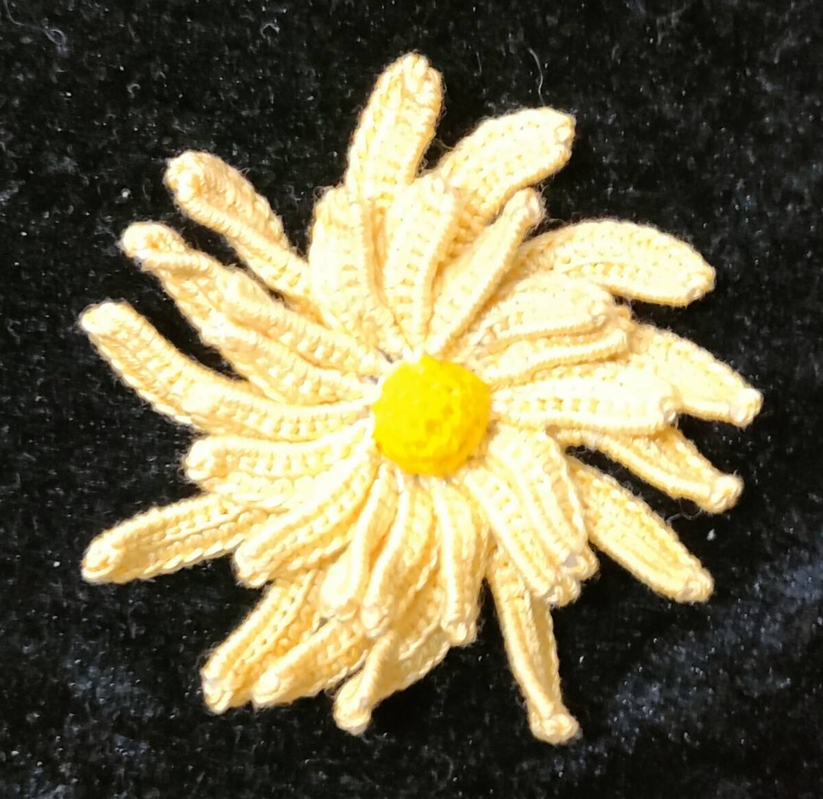 - アイリッシュクロッシェ クリサンセマム 黄色 7㎝ レース モチーフ フラワー キクの花 菊 ハンドメイド 手仕事 かぎ針編み