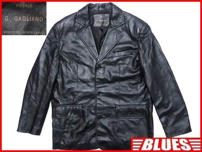 - 即決★G.GAGLIANO★メンズL レザーテーラードジャケット ガグリアーノ 黒 ブラック 本革 スーツ 本皮 ビジネス 革ジャン 背広 アウター