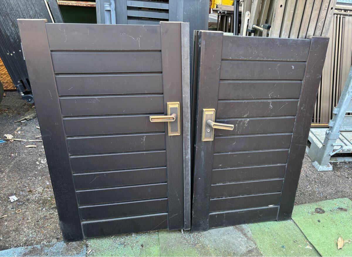 - アルミ 門扉 目隠し 両開 勝手口 幅約60+60cm 高約100cm 柱無