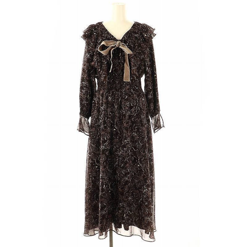 > スナイデル SNIDEL 23年 プリーツカラープリントワンピース ロング 長袖 総柄 0 ダークブラウン ピンクベージュ オフホワイト /DO ■OS ■S