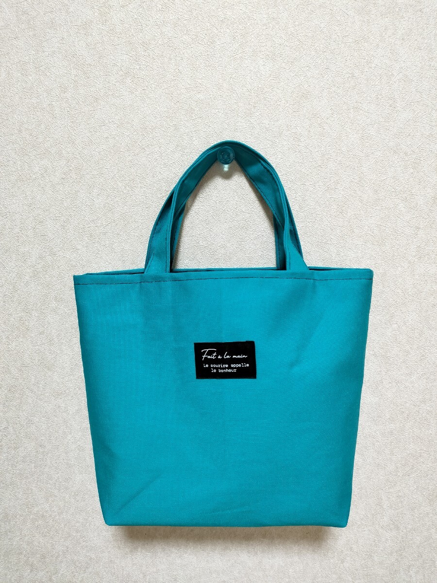 - ハンドメイド トートバッグ ランチバッグ サブバッグシンプルバッグ エメラルドグリーン