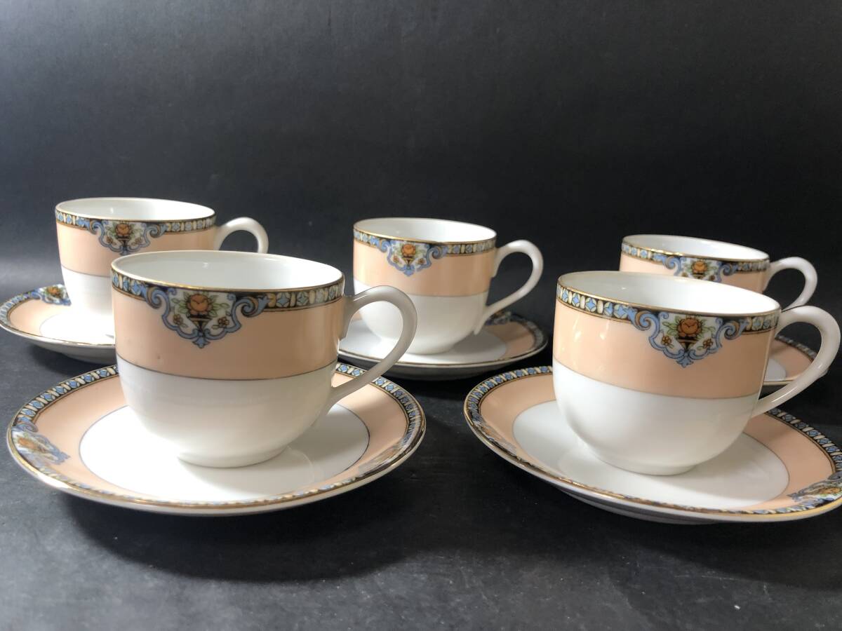 - オールドノリタケ デミタスカップ&ソーサー 5客 ローズピンク エレガント 大正ロマン RCマーク ヤジロベーマーク ノリタケ