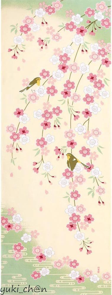 - 絵てぬぐい しだれ夢桜 美しい和の絵 綿100% 90cm x 34cm