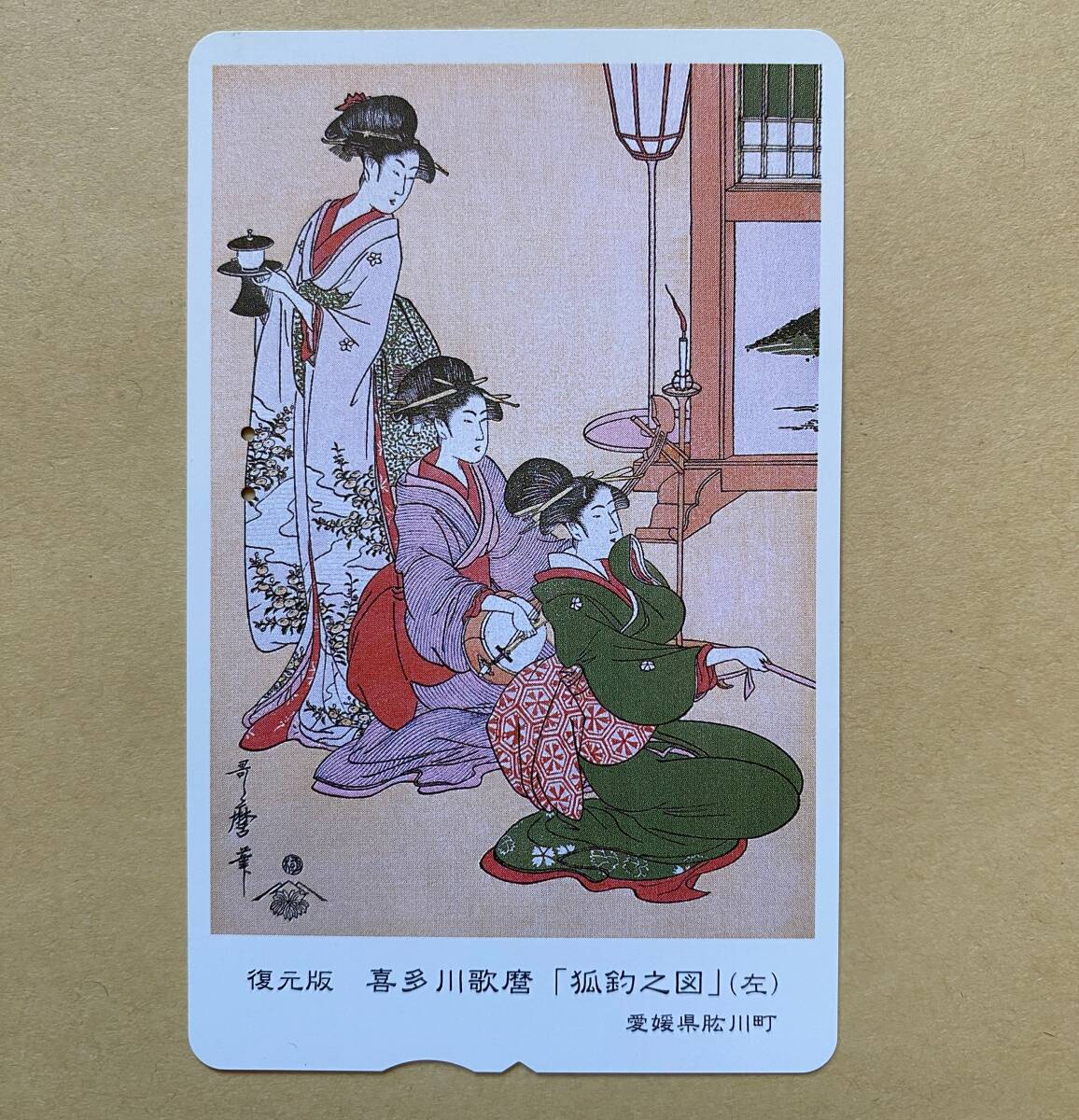 - 【使用済】 ふみカード 復元版 喜多川歌麿 「狐釣之図」(左)
