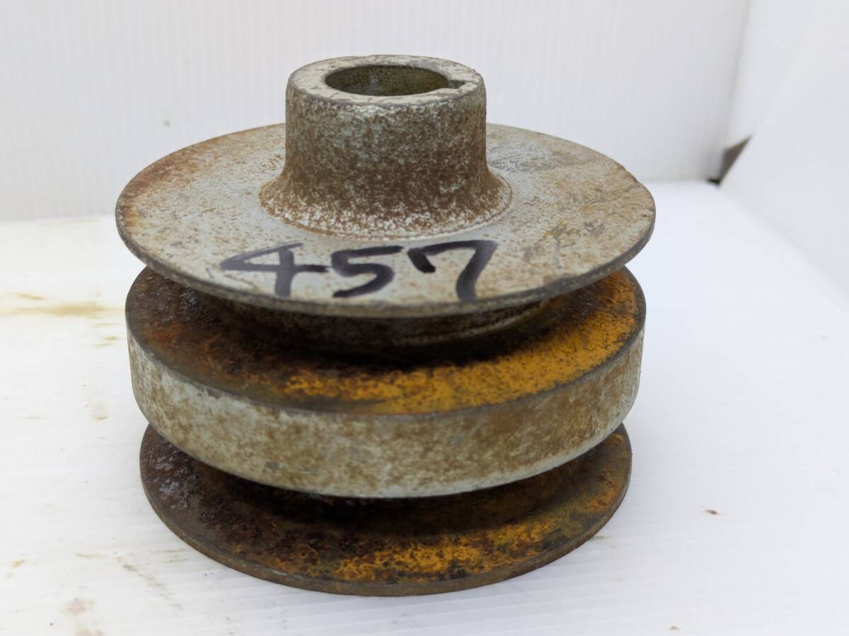 - No.457●2連プーリー●Bベルト●軸径Φ20mm●鍵幅5mm●外径Φ90mm●全体厚み70mm●発動機用●エンジン用●パーツ●部品