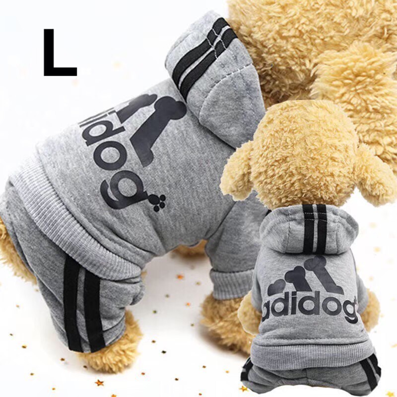 - 暖かい裏起毛♪アディドッグつなぎパーカー犬服ペットグレーLサイズ!