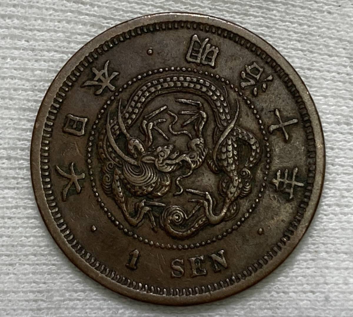 - ・ 古銭? 一銭? ★R03 竜1銭銅貨 一銭 1銭 明治10年 角ウロコ 明治十年 銅貨 硬貨 約7.20g 約28.0mm 1.5mm 龍