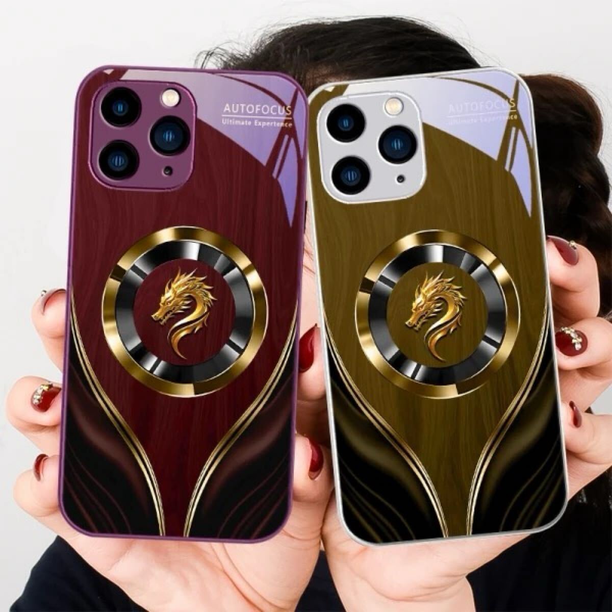 - 赤い布柄ドラゴンパープル Iphone 15 14 13 12 ミニ 11 プロマックス X XS XR 7 8 プラス 2020 22 SE 強化ガラス電話ケース 大人気 高級