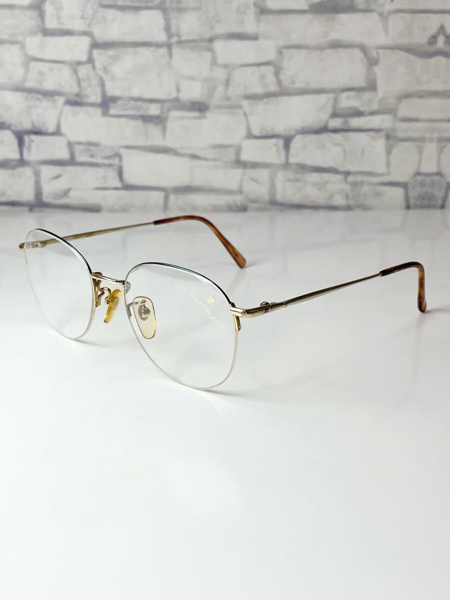 - 未使用 courreges 4404 クレージュ ハーフリム ボストン型 グリーン×ゴールド 眼鏡 未使用品