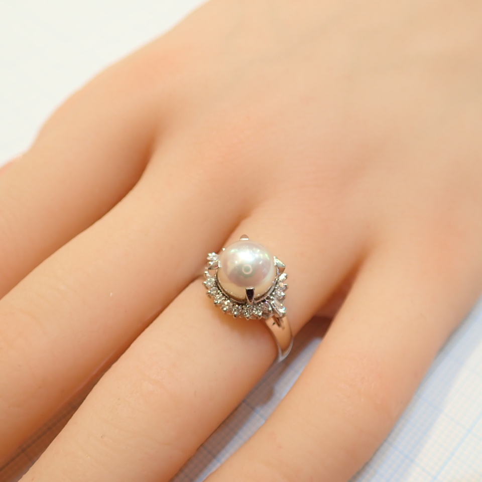 - ■Pt900 約8.1mm あこや真珠リング D:0.26ct■アンティーク 昭和レトロ■パール 本真珠 アコヤ■指輪■中古磨き仕上げ■