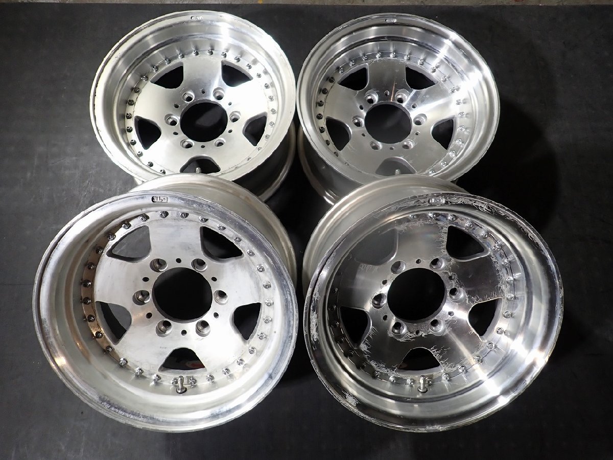 - RK6573【送料無料15インチ】4本 EMR PRODUCT 70ランクルプラド ワイドボディなど スタッドレス 中古ホイール ●15×7J 139.7/6H ET-13●