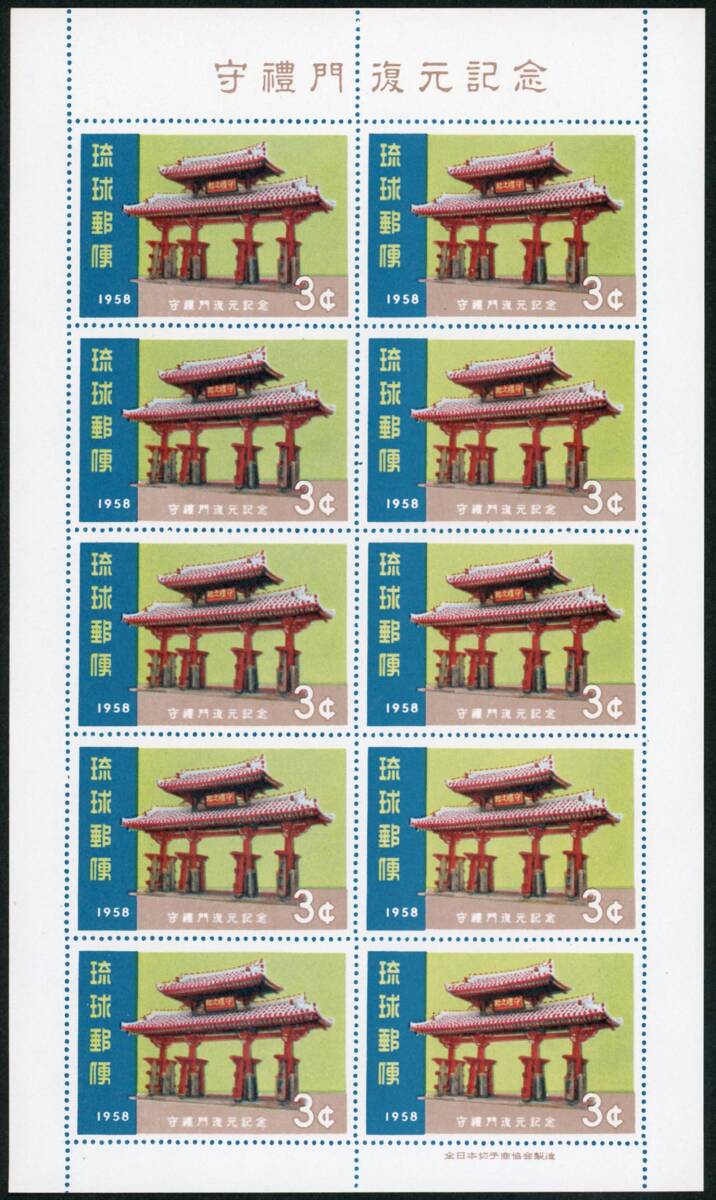 模刻品シートの出品でして、本物の切手ではございませんので、お間違えのないようお願いします。銘版が「全日本切手商協会製造」の方のシートです。無目打(目打ちは印刷)・裏糊なし。