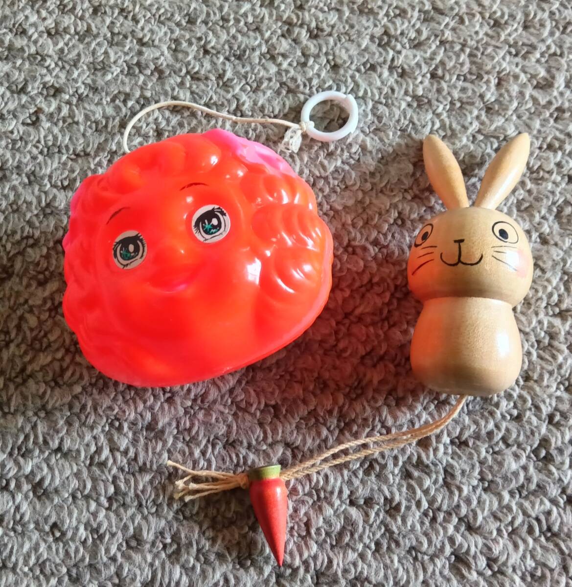 - 昭和レトロ*チビちゃん&木製うさぎ*ヨーヨー?*昔のおもちゃ*