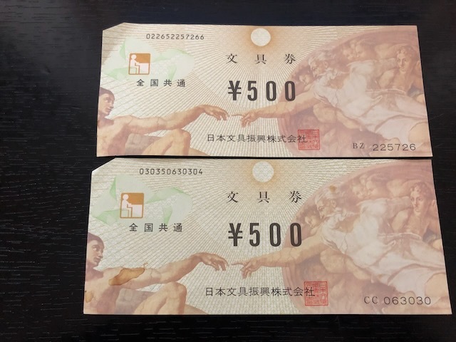 - 全国共通 文具券 500円×2枚・未使用 使用不可