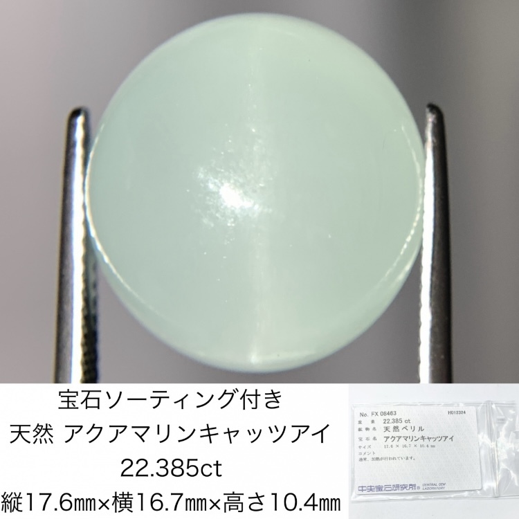 > アクアマリンキャッツアイ 22.385ct 宝石ソーティング付き 縦17.6×横16.7×高さ10.4 1062Y