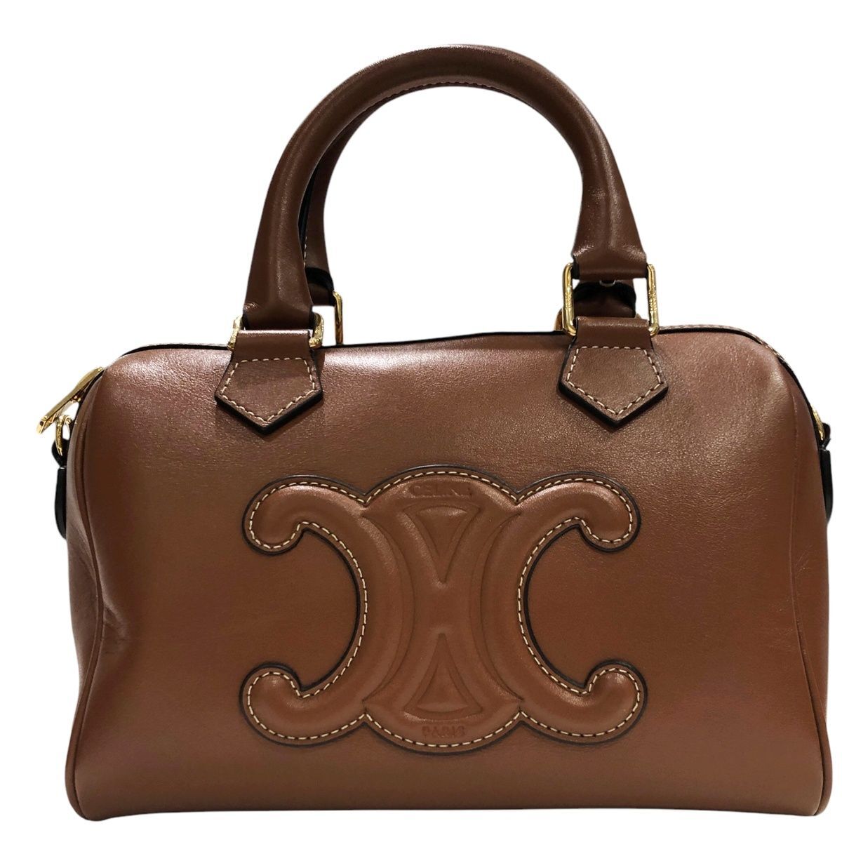 - 【中古】 CELINE セリーヌ113773DU3.04LU スモール ボストントリオンフ 2WAYショルダーバッグ タン 24018674 SA