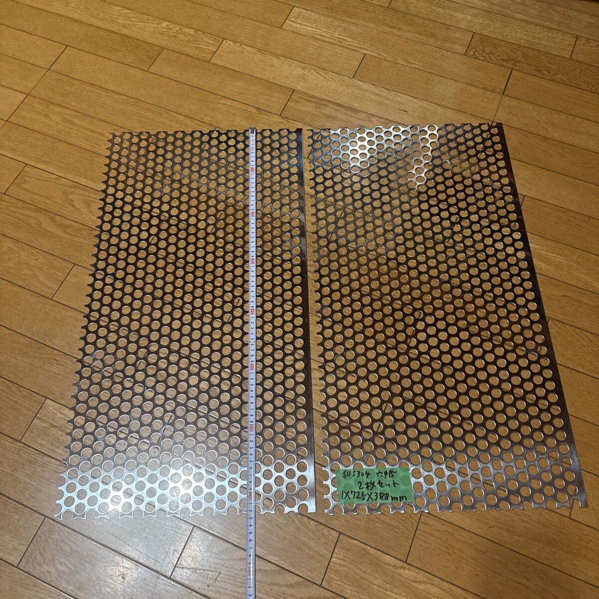 - ステンレスパンチング板 725×388ミリ 厚み1ミリ 穴15ミリ 2枚セット SUS304