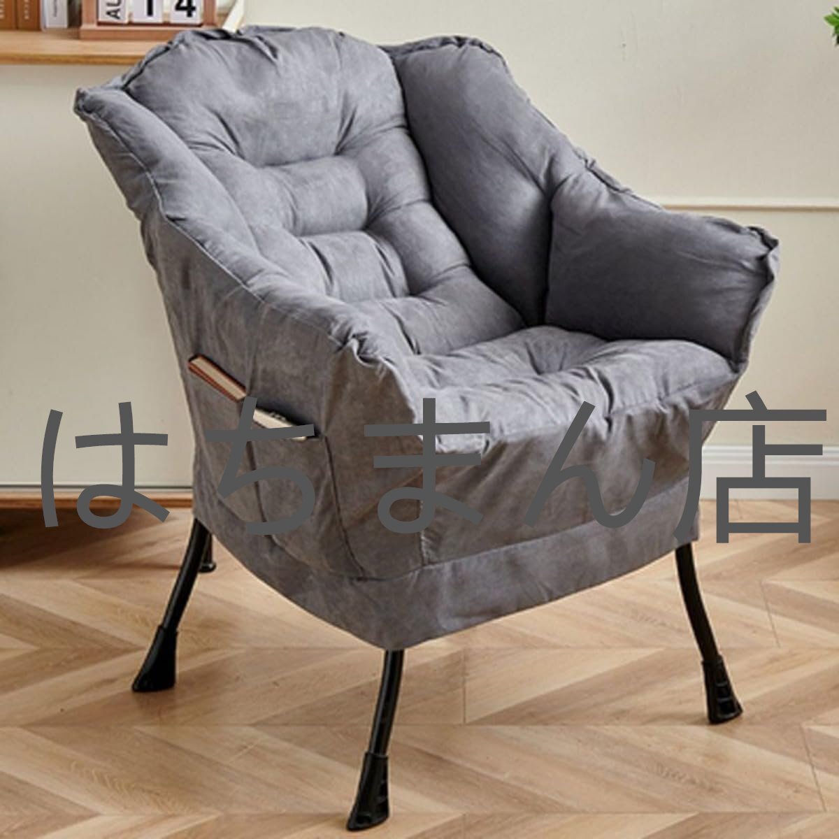 > ソファ 1人掛け カウチ チェア ポケット付き ハイバック ふわふわ リラックス 北欧 リクライニング 一人用ソファー (スエード灰です)