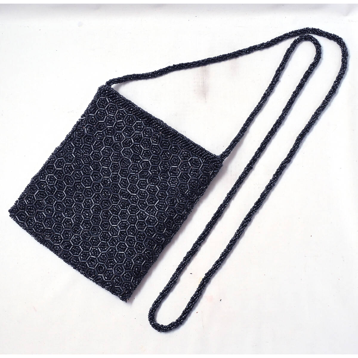 - refle【レトロ】 ビーズ 刺繍 ポーチ ミニ バッグ 斜めがけ 肩掛け ノーブランド 紺 ネイビー 濃紺 [①]
