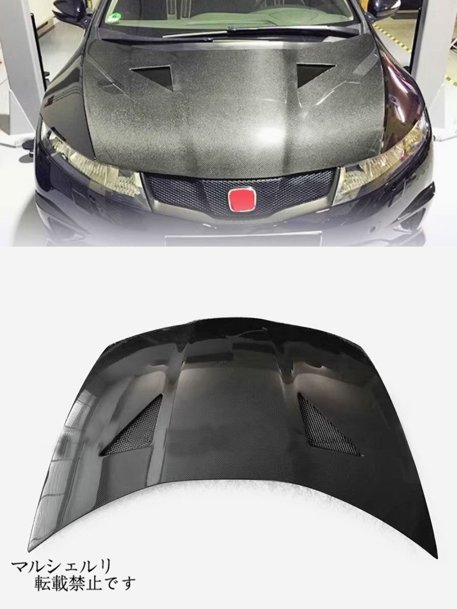 - ホンダ シビック FN2 TypeR 改装 エンジン フード カーボン ファイバー ボンネット