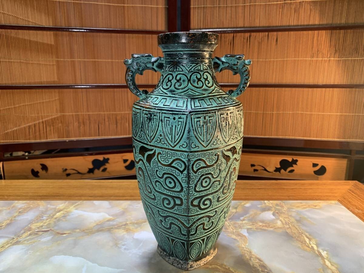 - 中古 青銅花瓶 青銅製 1.2kg 花器 花生 一輪挿し 花瓶 2yo