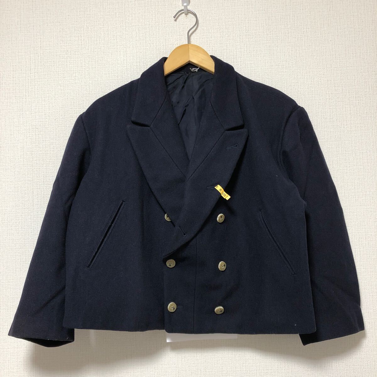 - (k) 80s 90s 年代 Y's ワイズ ワイド 丈短 ウールジャケット ショート丈 角ボタン ネイビー 紺