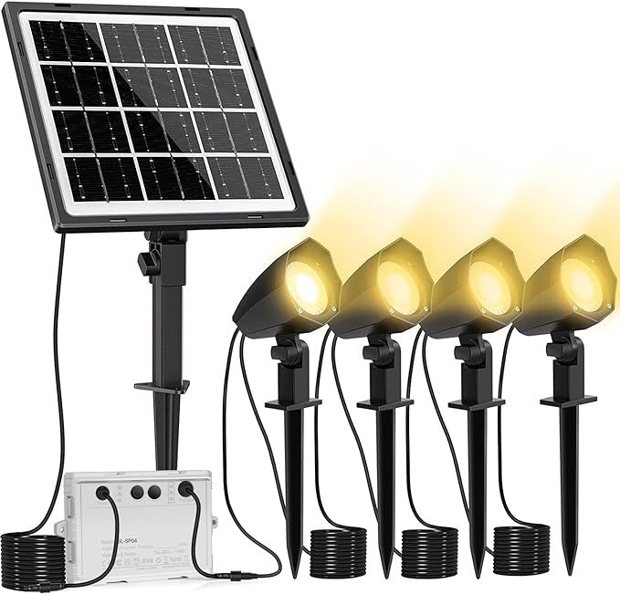 - ソーラーライト 屋外 ガーデンライト ソーラー LED スポットライト 分離式 明るい3色切替・2段階調光 5000mAh大容量 IP66防水 電球色