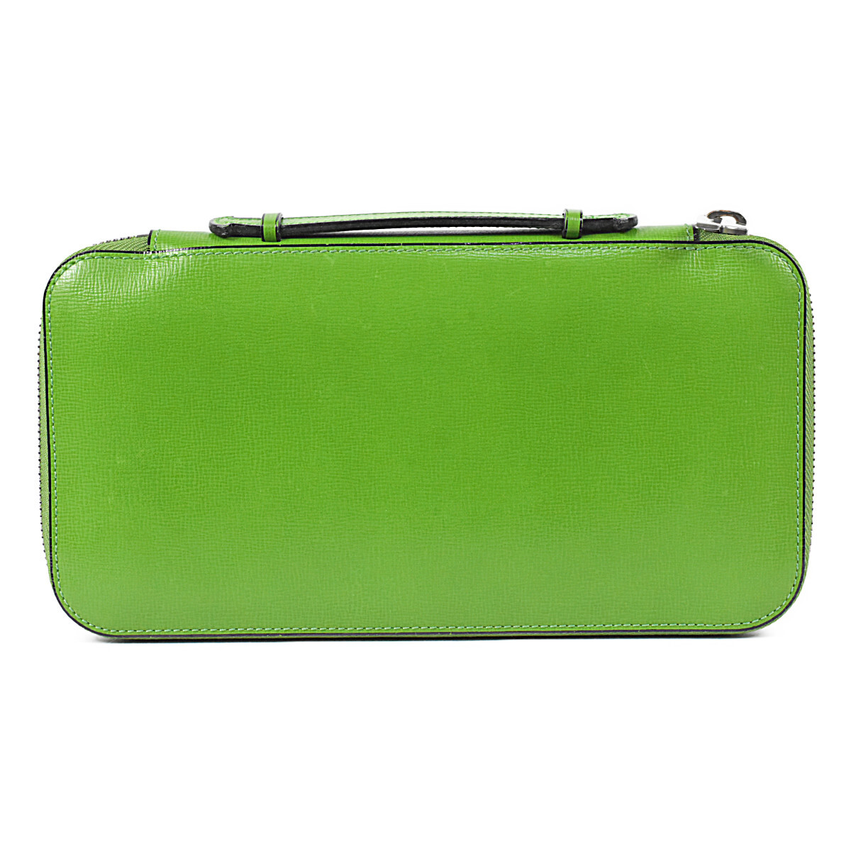 - ヴァレクストラ 美品 メンズ ラウンド長財布 トラベルケース クラッチバッグ セカンドバッグ グリーン Valextra